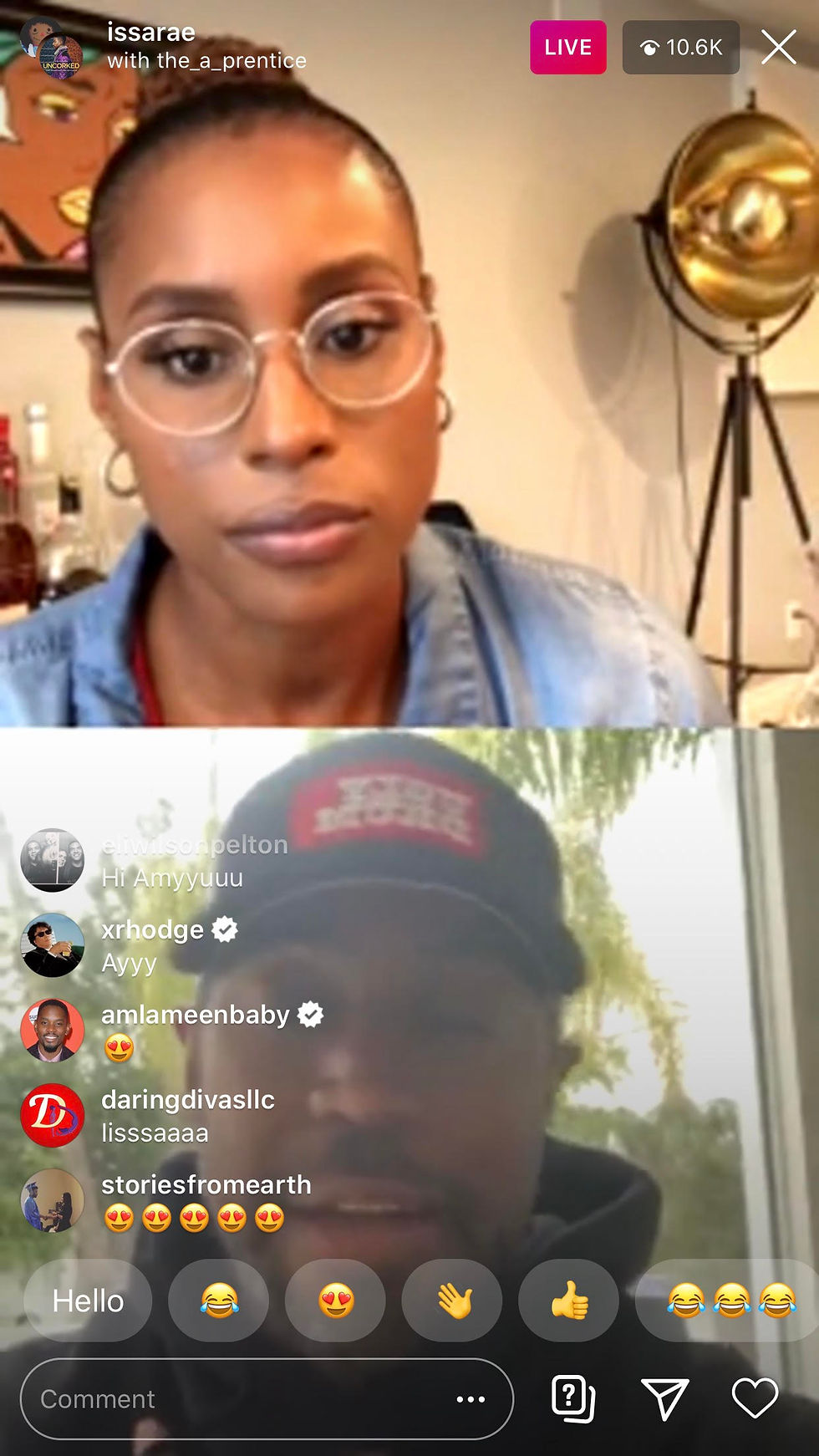 To engage the audience and set the tone, Issa Rae started her live promptly at 8:00pm ET. Given the fact that Issa rarely goes live this was a treat for fans, her live feed peaked at 40k views.